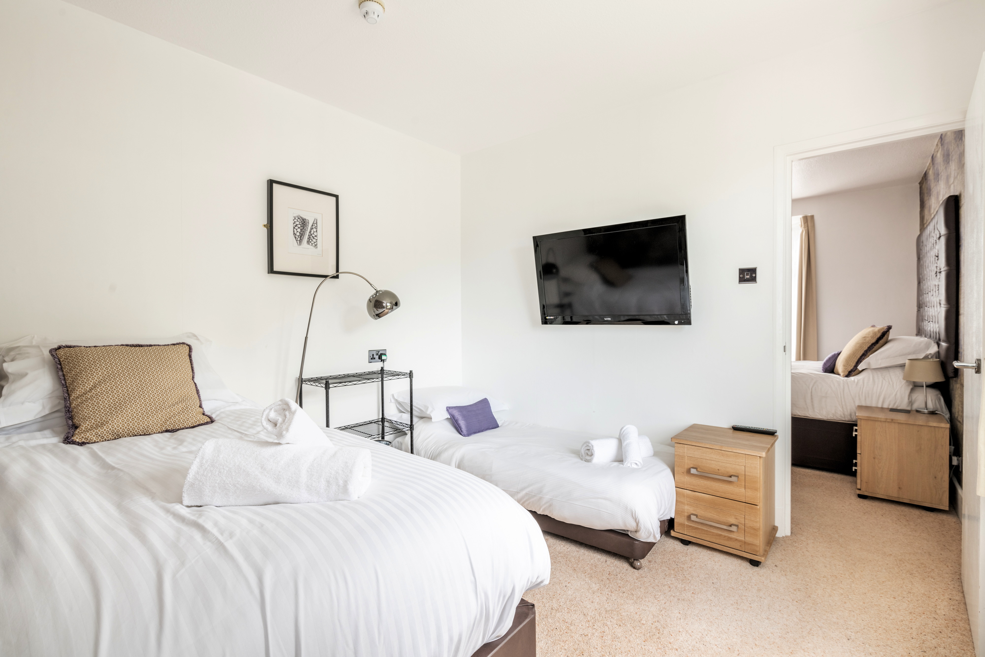 A twin bedded room with a sea view and ensuite shower room. |