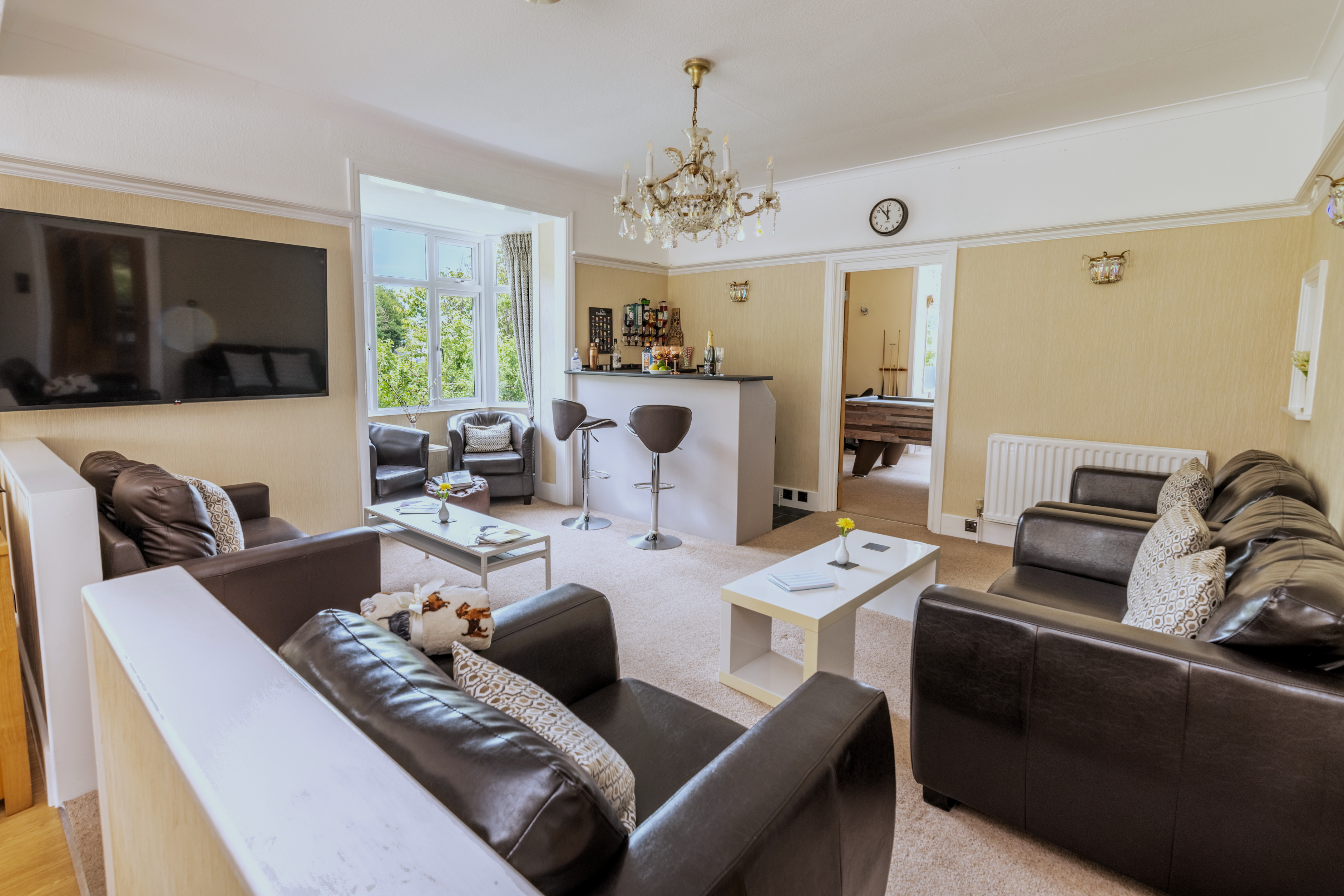Next you'll find a games room with a pool table and electronic dartboard.